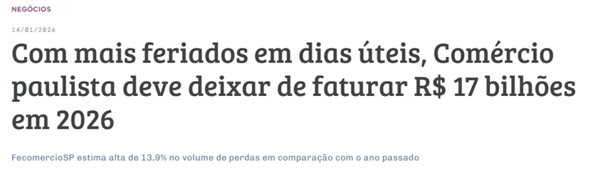 O ano de 2026 começa com alguns desafios sazonais para quem é empreendedor de pequenas ou médias empresas. Ao longo dos próximos meses, uma combinação de fatores poderá influenciar diretamente na produtividade dos negócios, especialmente aquelas de menor porte: Os eventos citados podem fazer com que muitas empresas fechem ou operem parcialmente em diversas datas […]
