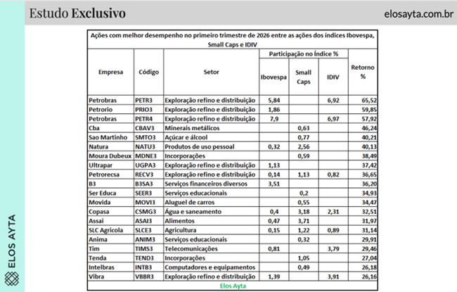 O primeiro trimestre de 2026 ficará marcado como um dos mais intensos das últimas décadas para a Bolsa brasileira. No centro desse movimento, a Petrobras (PETR4;PETR3) rompeu uma barreira histórica: a PETR3 avançou 65,52%, no melhor resultado desde o 1º trimestre de 1999, enquanto a PETR4 subiu 57,92%, atingindo seu maior ganho desde o 4º […]